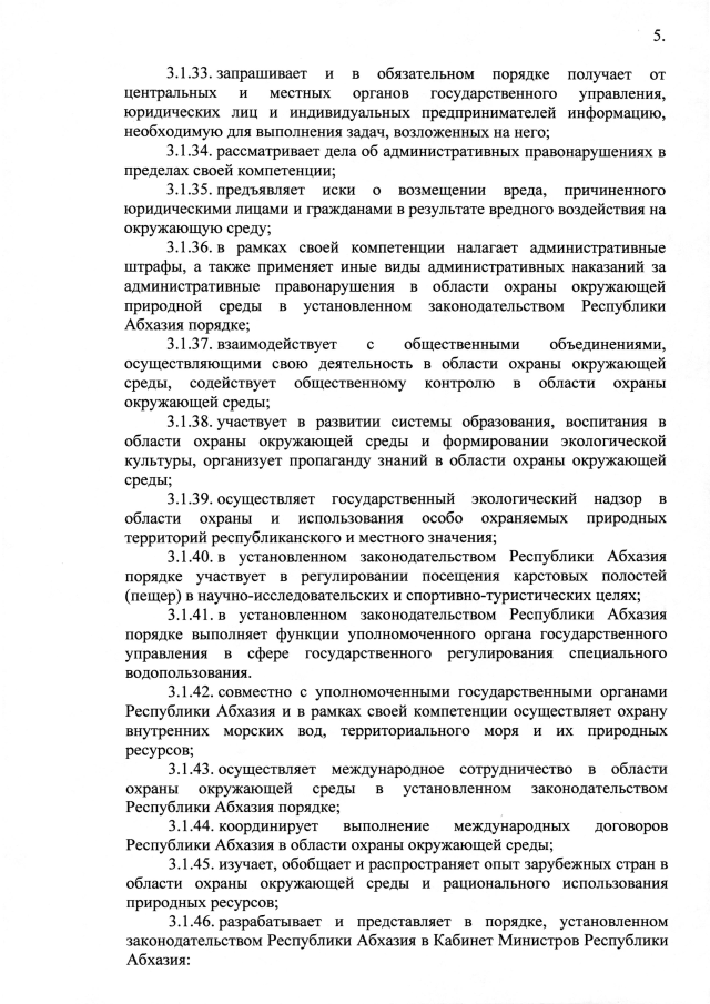 Постановление Кабинета Министров Республики Абхазия от 26.06.2025 №113 "Об утверждении Положения о Государственном комитете Республики Абхазия по экологии и природопользованию"