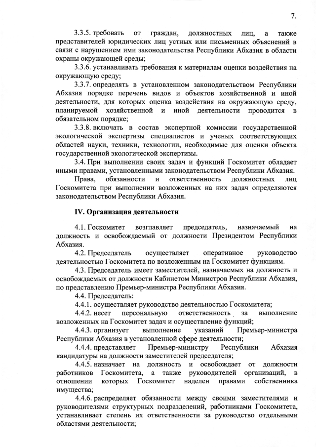 Постановление Кабинета Министров Республики Абхазия от 26.06.2025 №113 "Об утверждении Положения о Государственном комитете Республики Абхазия по экологии и природопользованию"