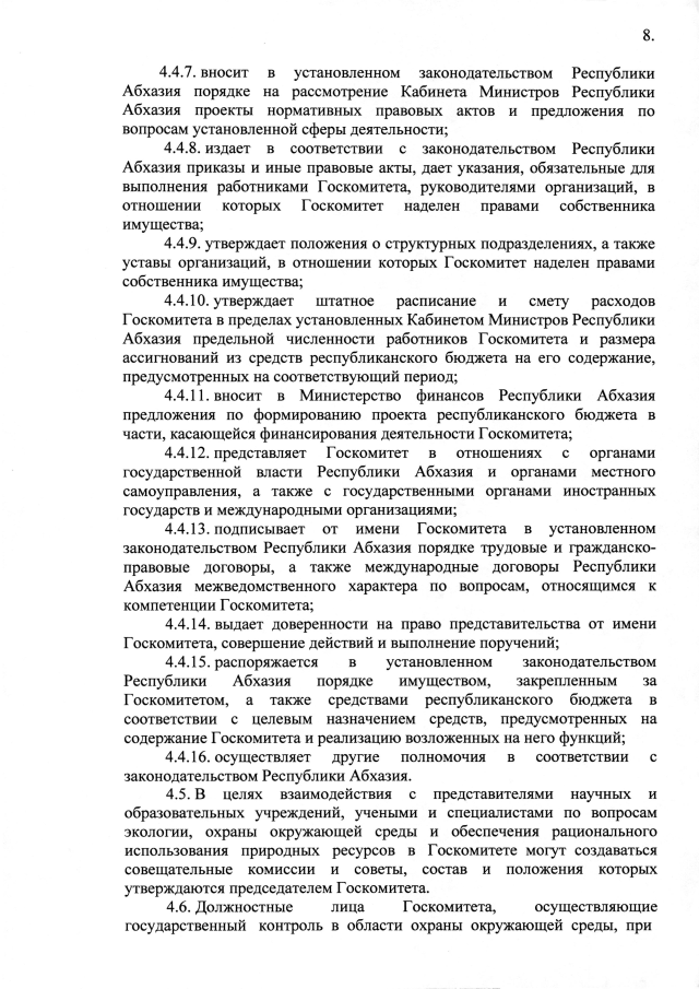 Постановление Кабинета Министров Республики Абхазия от 26.06.2025 №113 "Об утверждении Положения о Государственном комитете Республики Абхазия по экологии и природопользованию"