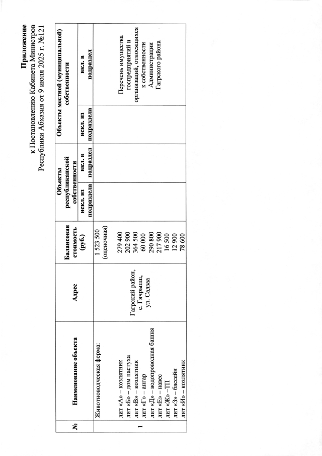 Постановление Кабинета Министров Республики Абхазия от 09.07.2025 №121 "О внесении изменений в Постановление Кабинета Министров Республики Абхазия от 6 июня 2002 года №117 <О порядке оформления разграничения государственной собственности и формирования Реестра собственности> и о передаче административных помещений"