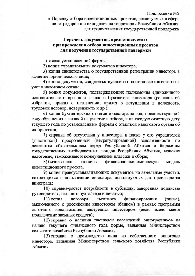 Постановление Кабинета Министров Республики Абхазия от 16.09.2025 №144 "О государственной поддержке в 2025 году инвестиционных проектов в сфере развития виноградарства и виноделия в Республике Абхазия"