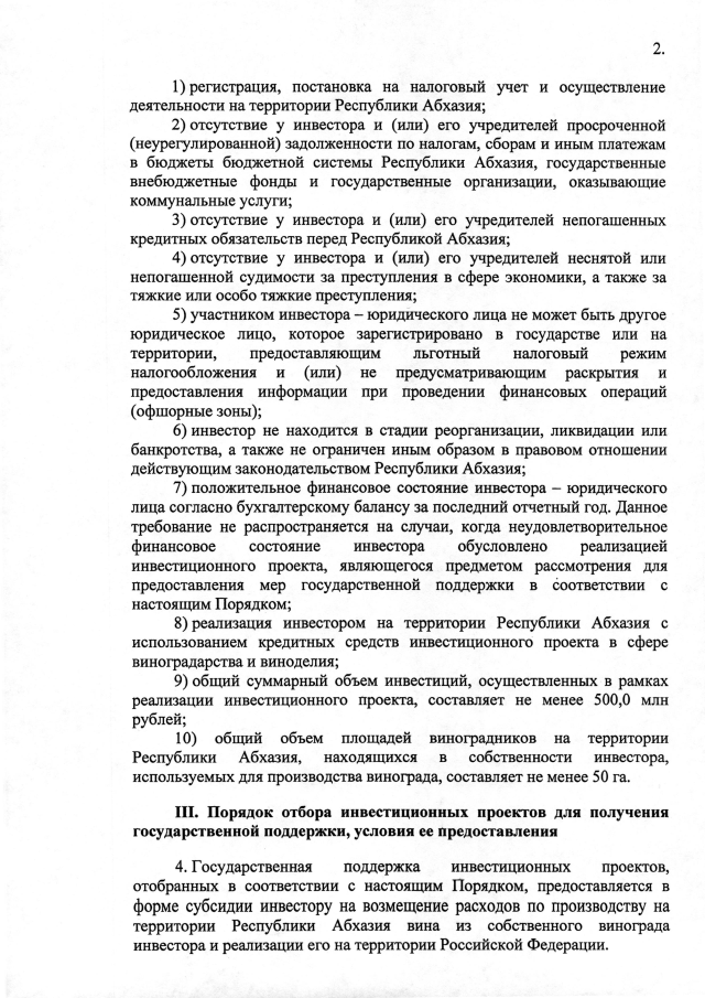 Постановление Кабинета Министров Республики Абхазия от 16.09.2025 №144 "О государственной поддержке в 2025 году инвестиционных проектов в сфере развития виноградарства и виноделия в Республике Абхазия"