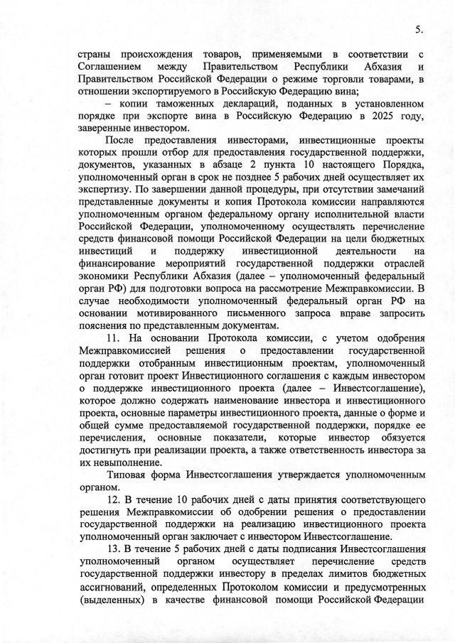 Постановление Кабинета Министров Республики Абхазия от 16.09.2025 №144 "О государственной поддержке в 2025 году инвестиционных проектов в сфере развития виноградарства и виноделия в Республике Абхазия"