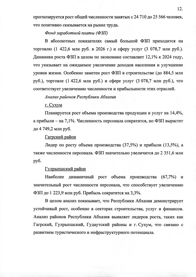 Постановление Кабинета Министров Республики Абхазия от 10.09.2025 №142 "Об утверждении Прогноза социально-экономического развития Республики Абхазия на 2026 год"