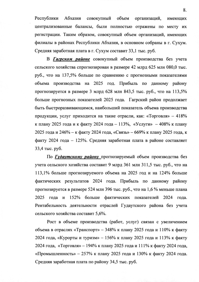 Постановление Кабинета Министров Республики Абхазия от 10.09.2025 №142 "Об утверждении Прогноза социально-экономического развития Республики Абхазия на 2026 год"