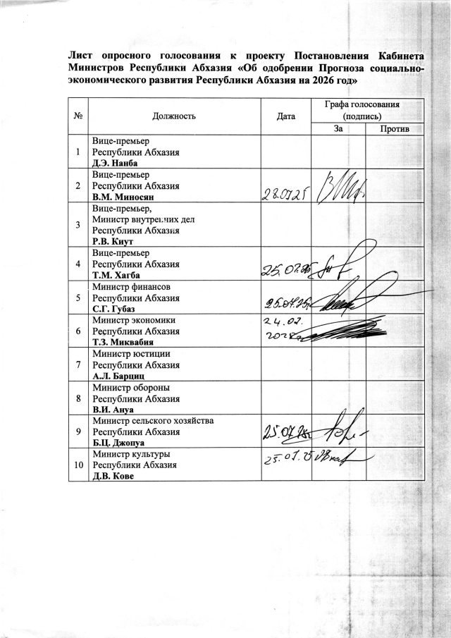 Постановление Кабинета Министров Республики Абхазия от 10.09.2025 №142 "Об утверждении Прогноза социально-экономического развития Республики Абхазия на 2026 год"