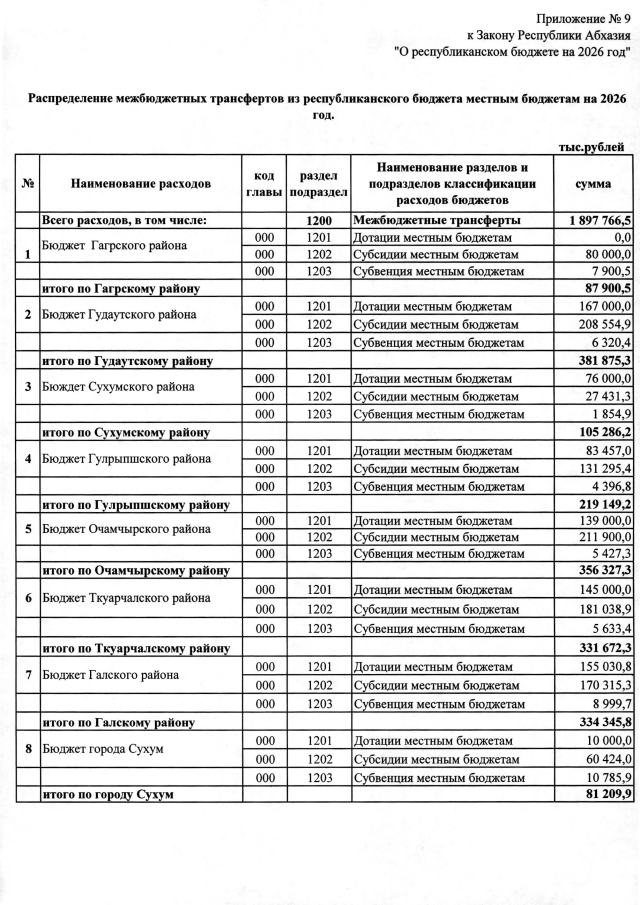 Постановление Кабинета Министров Республики Абхазия от 28.10.2025 №164 "О проекте Закона Республики Абхазия "О республиканском бюджете на 2026 год""