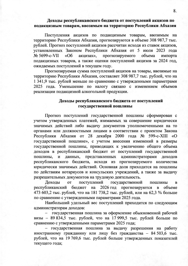 Постановление Кабинета Министров Республики Абхазия от 28.10.2025 №164 "О проекте Закона Республики Абхазия "О республиканском бюджете на 2026 год""