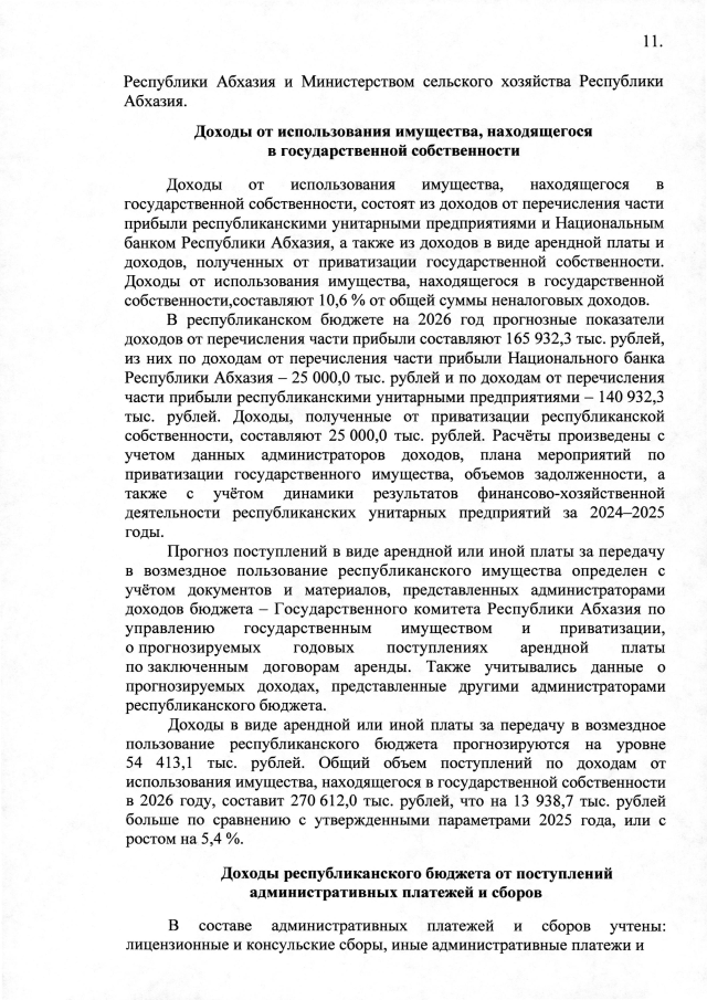 Постановление Кабинета Министров Республики Абхазия от 28.10.2025 №164 "О проекте Закона Республики Абхазия "О республиканском бюджете на 2026 год""