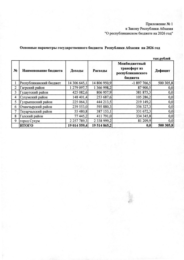 Постановление Кабинета Министров Республики Абхазия от 28.10.2025 №164 "О проекте Закона Республики Абхазия "О республиканском бюджете на 2026 год""