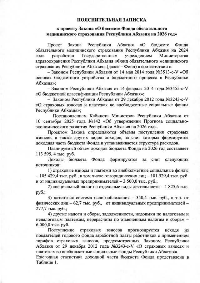 Постановление Кабинета Министров Республики Абхазия от 28.10.2025 №167 "О проекте Закона Республики Абхазия <О бюджете Фонда обязательного медицинского страхования Республики Абхазия на 2026 год>"