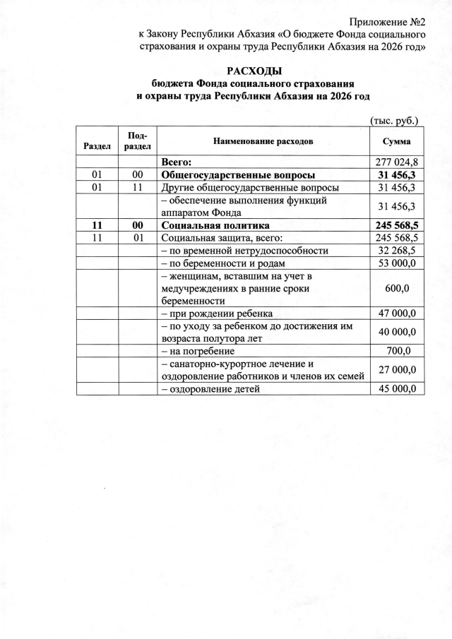 Постановление Кабинета Министров Республики Абхазия от 28.10.2025 №168 "О проекте Закона Республики Абхазия <О бюджете Фонда социального страхования и охраны труда Республики Абхазия на 2026 год>"
