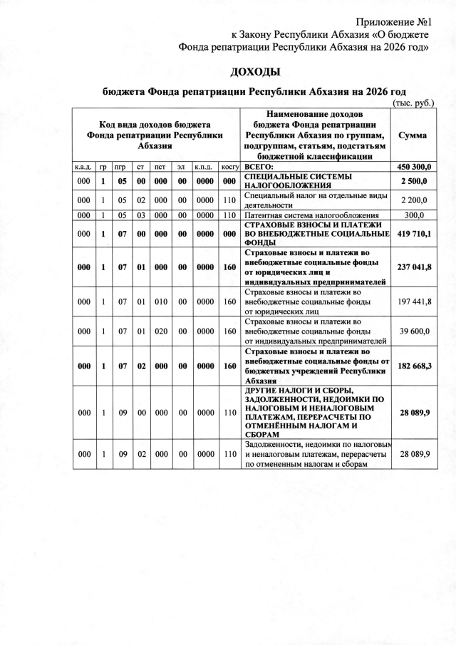 Постановление Кабинета Министров Республики Абхазия от 28.10.2025 №169 "О проекте Закона Республики Абхазия <О бюджете Фонда репатриации Республики Абхазия на 2026 год>"