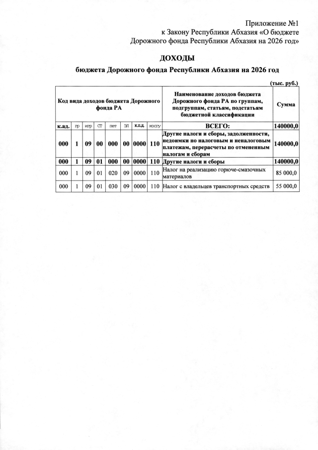 Постановление Кабинета Министров Республики Абхазия от 28.10.2025 №170 "О проекте Закона Республики Абхазия <О бюджете Дорожного фонда Республики Абхазия на 2026 год>"