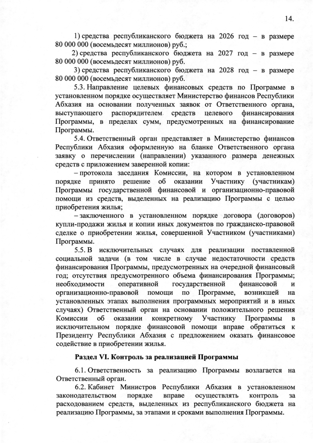 Постановление Кабинета Министров Республики Абхазия от 28.10.2025 №171 "Об одобрении проекта государственной целевой программы <Жилище 2026-2028>"