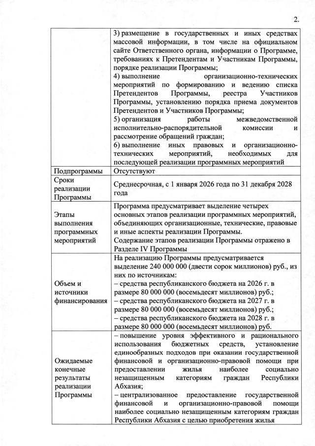 Постановление Кабинета Министров Республики Абхазия от 28.10.2025 №171 "Об одобрении проекта государственной целевой программы <Жилище 2026-2028>"