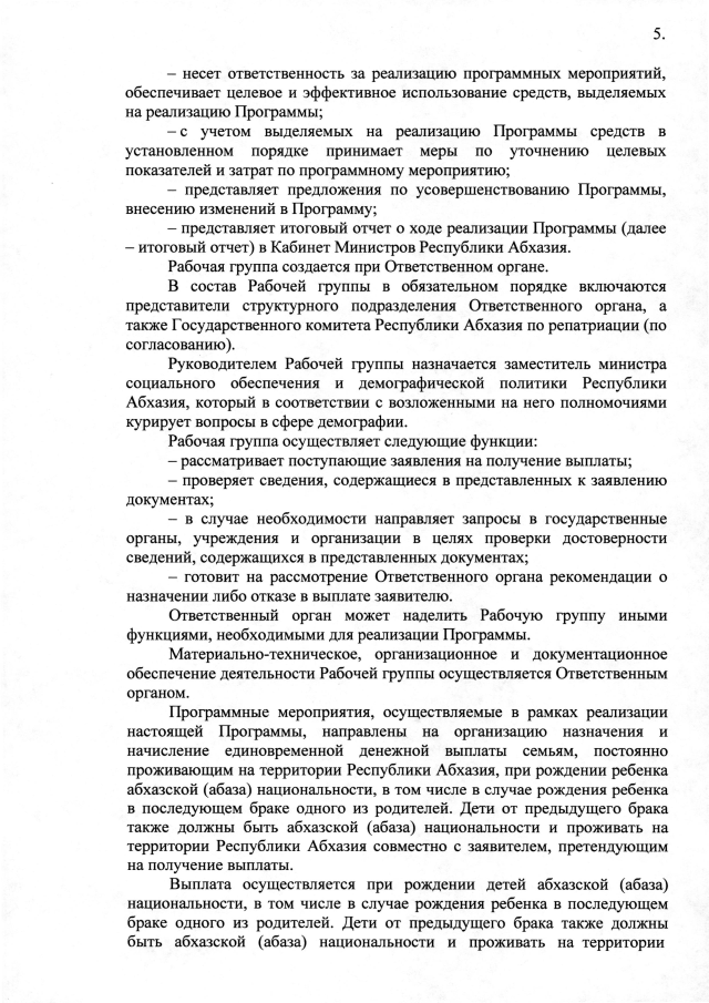 Постановление Кабинета Министров Республики Абхазия от 28.10.2025 №172 "Об утверждении межведомственной целевой программы на 2026 год <Развитие демографии>"