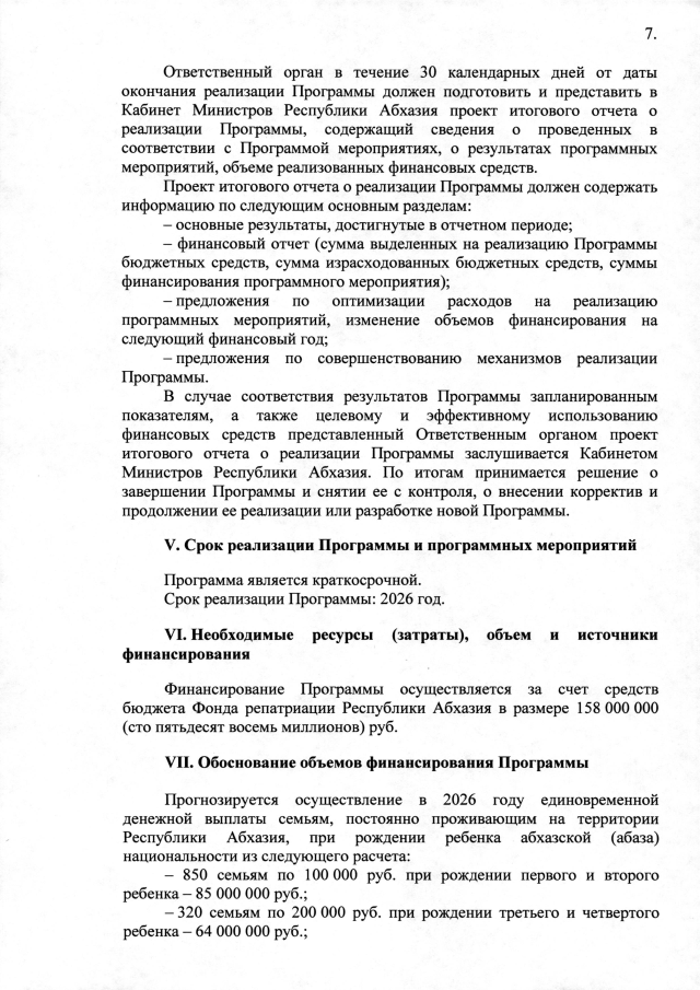 Постановление Кабинета Министров Республики Абхазия от 28.10.2025 №172 "Об утверждении межведомственной целевой программы на 2026 год <Развитие демографии>"