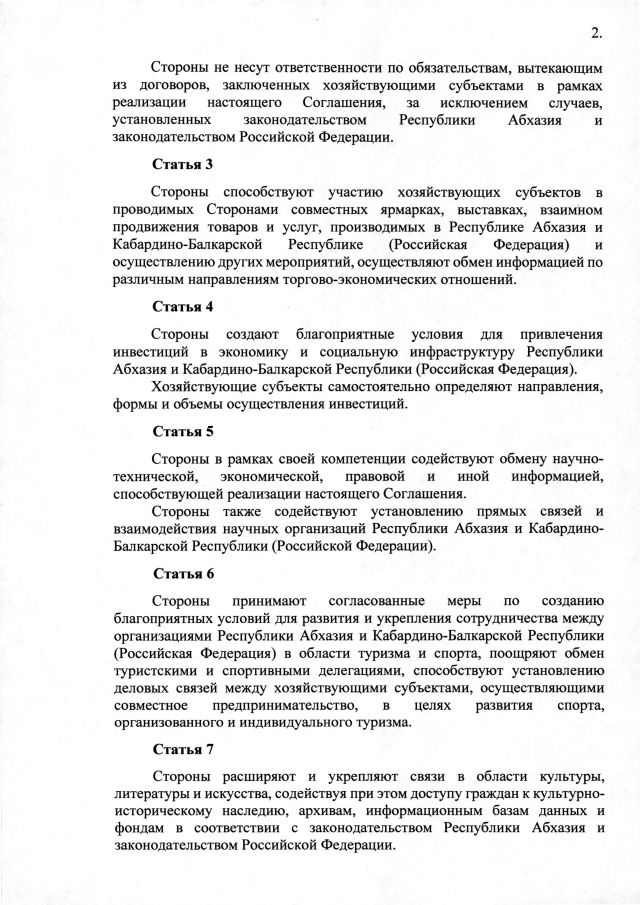 Постановление Кабинета Министров Республики Абхазия от 28.10.2025 №173 "О проведении переговоров и о подписании Соглашения между Правительством Республики Абхазия и Правительством Кабардино-Балкарской Республики (Российская Федерация) о торгово-экономическом, научно-техническом и культурном сотрудничестве"