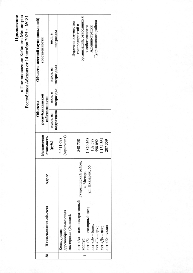 Постановление Кабинета Министров Республики Абхазия от 14.11.2025 №181 "О внесении изменений в Постановление Кабинета Министров Республики Абхазия от 6 июня 2002 года №117 <О порядке оформления разграничения государственной собственности и формирования Реестра собственности>"
