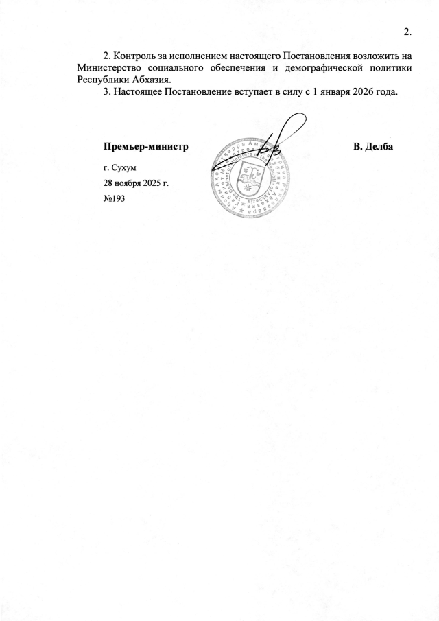 Постановление Кабинета Министров Республики Абхазия от 28.11.2025 №193 "О внесении изменений в Положение о Министерстве социального обеспечения и демографической политики Республики Абхазия"