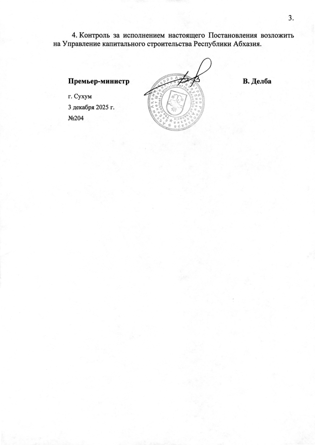 Постановление Кабинета Министров Республики Абхазия от 03.12.2025 №204 "О порядке оформления документации при корректировке объемов и видов работ в рамках реализации Инвестиционных программ содействия социально-экономическому развитию Республики Абхазия"