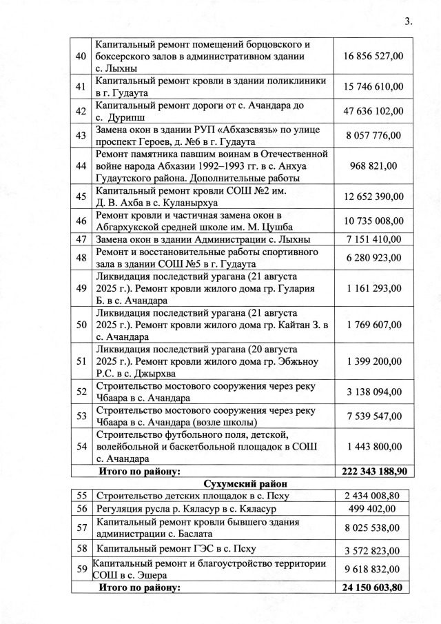 Постановление Кабинета Министров Республики Абхазия от 30.12.2025 №261 "Об утверждении Дополнительного перечня объектов, подлежащих строительству, ремонту и реконструкции в 2025 году за счет средств республиканского бюджета"