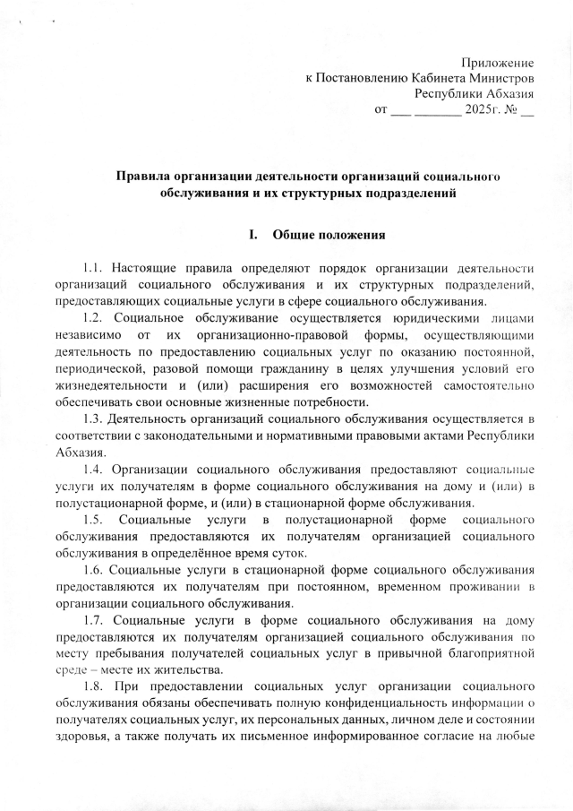 Постановление Кабинета Министров Республики Абхазия от 30.12.2025 №263 "Об утверждении Правил организации деятельности организаций социального обслуживания и их структурных подразделений"