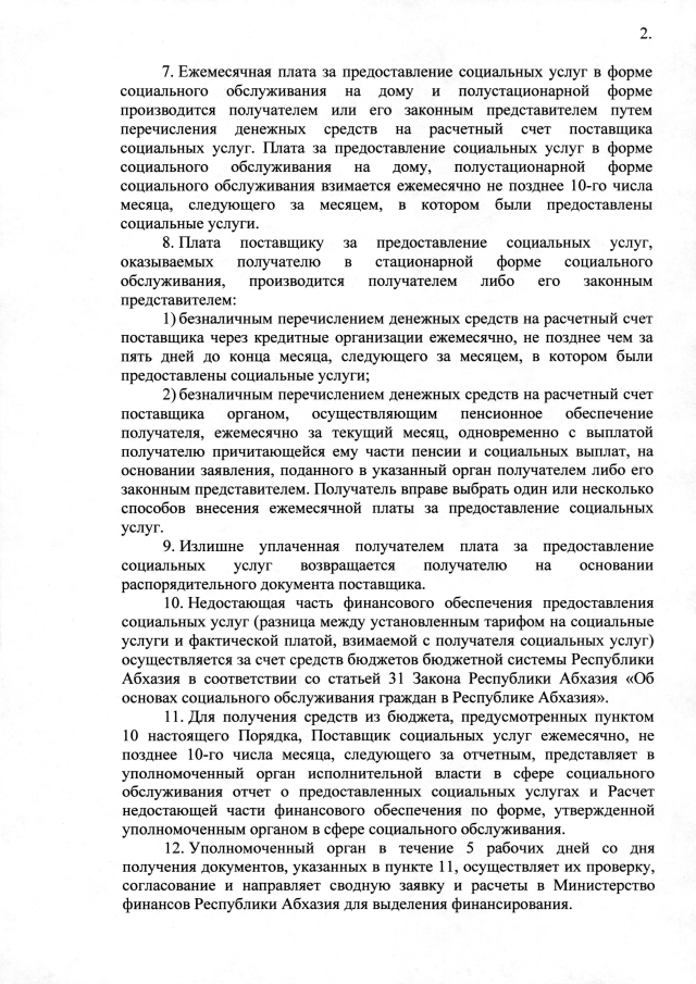 Постановление Кабинета Министров Республики Абхазия от 30.12.2025 №264 "Об утверждении размера платы за предоставление социальных услуг и порядка ее взимания"