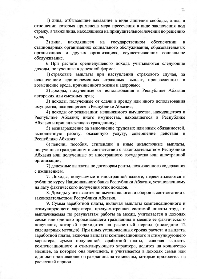 Постановление Кабинета Министров Республики Абхазия от 30.12.2025 №265 "Об утверждении Порядка определения среднедушевого дохода для предоставления социальных услуг бесплатно"