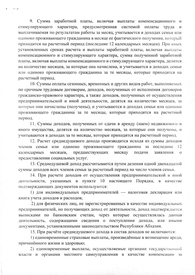 Постановление Кабинета Министров Республики Абхазия от 30.12.2025 №265 "Об утверждении Порядка определения среднедушевого дохода для предоставления социальных услуг бесплатно"