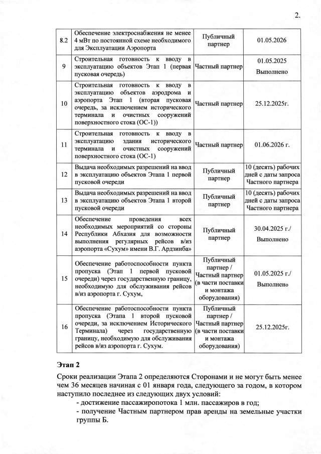 РАСПОРЯЖЕНИЕ Кабинета Министров Республики Абхазия от 30.12.2025 №371 "Об утверждении проекта Дополнительного Соглашения №2 к Соглашению о государственно-частном партнерстве о восстановлении имущественного комплекса <Международный аэропорт <Сухум> им. В. Г. Ардзинба> с целью возобновления международного авиасообщения от 27 октября 2023 года"