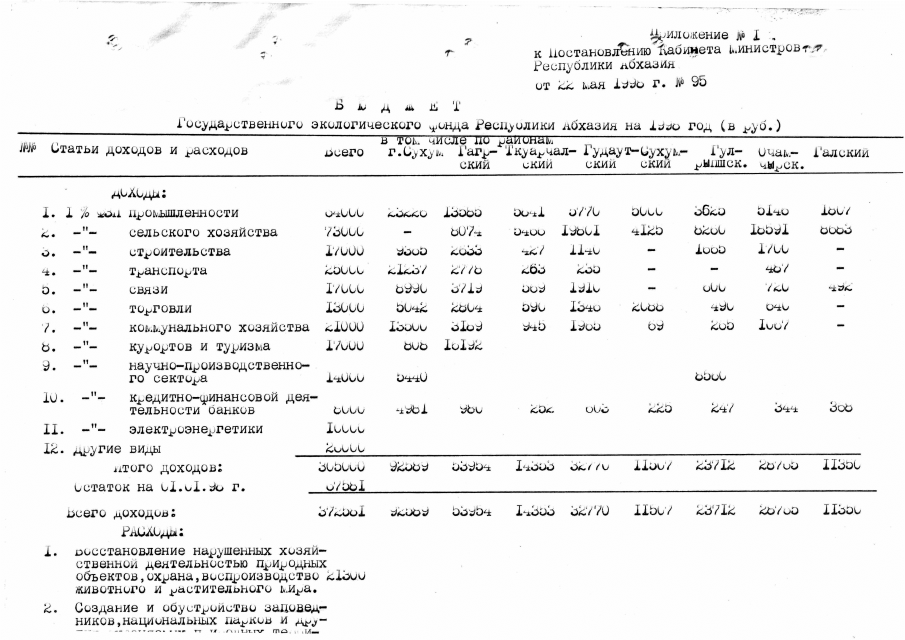 Постановление Кабинета Министров Республики Абхазия от 22.05.1998 № 95 "О бюджете Государственного экологического фонда Республики Абхазия на 1998 год"