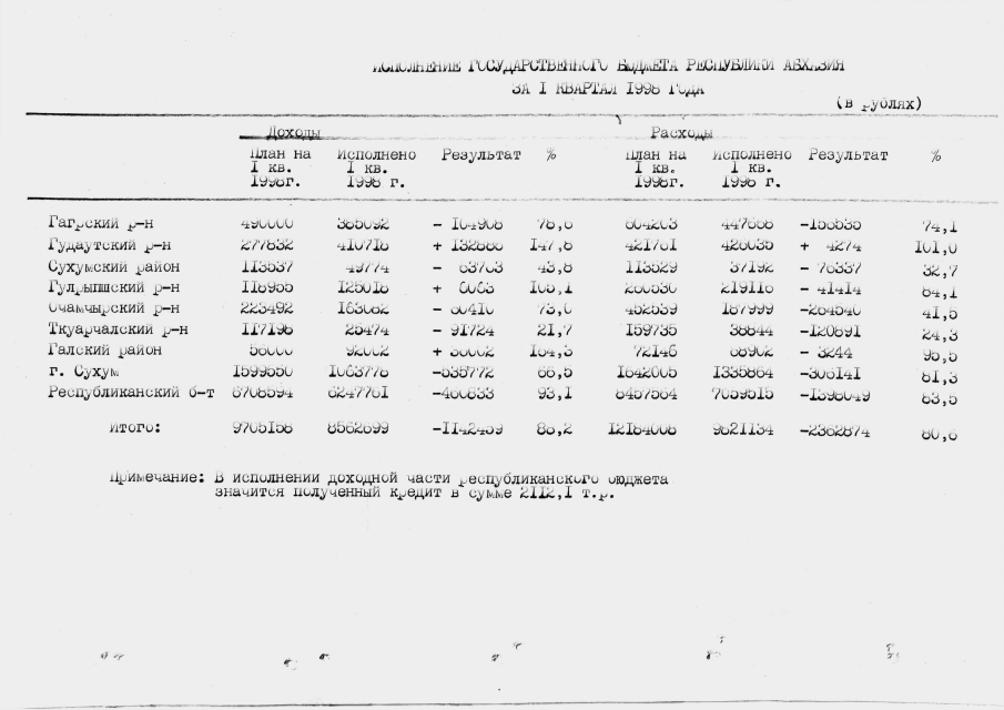Постановление Кабинета Министров Республики Абхазия от 22.05.1998 № 94 "Об итогах исполнения государственного бюджета Республики Абхазия за I квартал 1998 года"