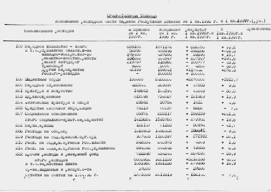 Постановление Кабинета Министров Республики Абхазия от 22.05.1998 № 94 "Об итогах исполнения государственного бюджета Республики Абхазия за I квартал 1998 года"