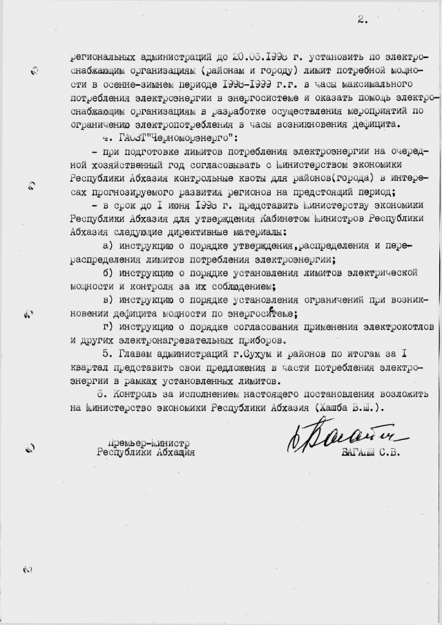 Постановление Кабинета Министров Республики Абхазия от 26.03.1998 № 57 "О введении лимитов потребления электроэнергии в Республике Абхазия"