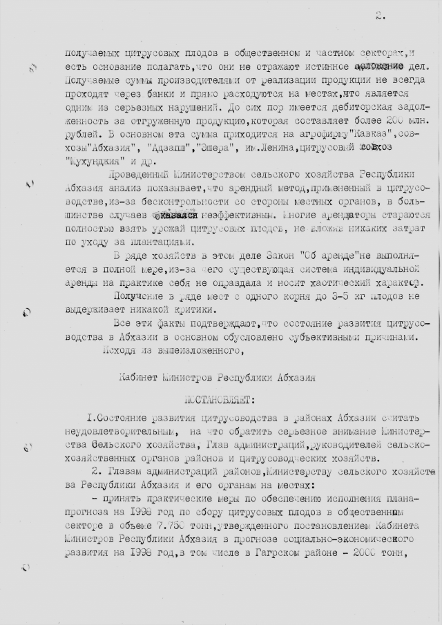 Постановление Кабинета Министров Республики Абхазия от 26.03.1998 № 55 "О мерах по обеспечению исполнения прогноза развития цитрусоводства в 1998 году"