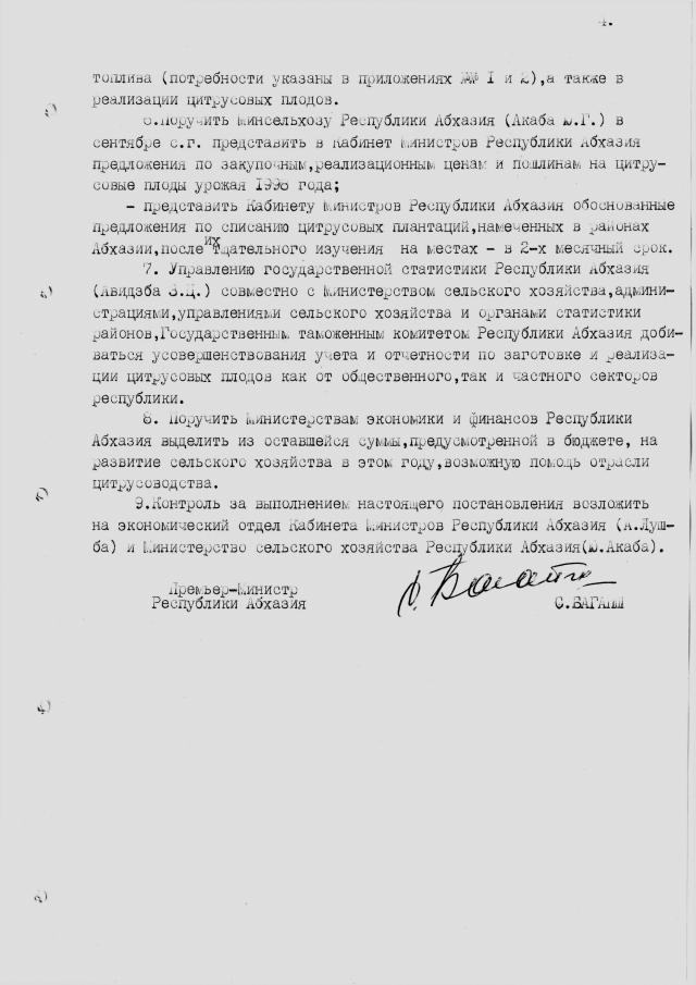 Постановление Кабинета Министров Республики Абхазия от 26.03.1998 № 55 "О мерах по обеспечению исполнения прогноза развития цитрусоводства в 1998 году"