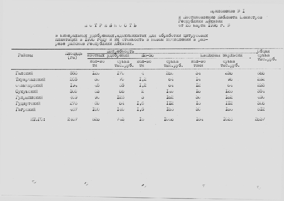 Постановление Кабинета Министров Республики Абхазия от 26.03.1998 № 55 "О мерах по обеспечению исполнения прогноза развития цитрусоводства в 1998 году"