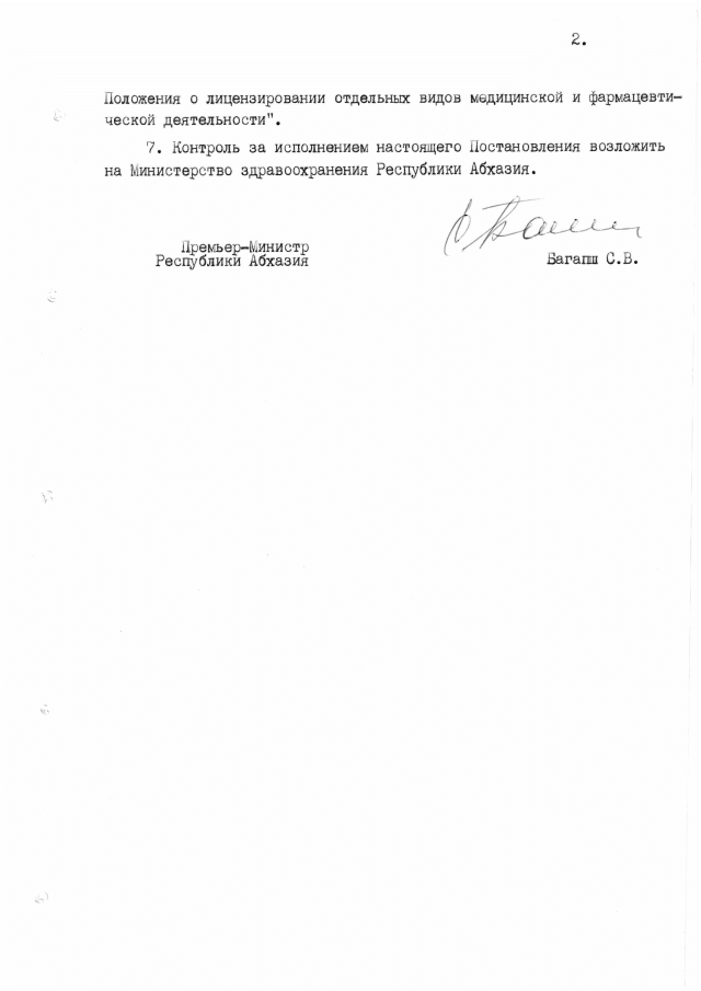 Постановление Кабинета Министров Республики Абхазия от 26.03.1998 № 65 "Об утверждении "Положения о порядке лицензирования фармацевтическкой деятельности"