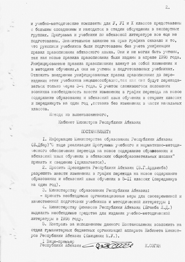 Постановление Кабинета Министров Республики Абхазия от 28.04.1998 № 79 "О ходе реализации Программы учебного и нормативно-методического обеспечения перехода на новое содержание образования и абхазский язык обучения в абхазских общеобразовательных школах"