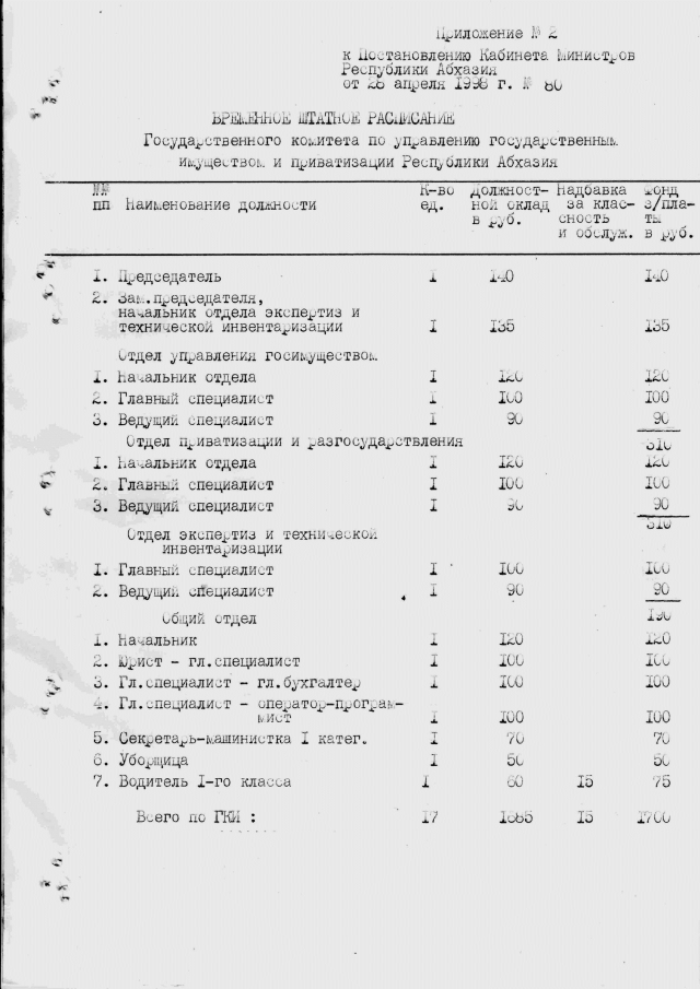 Постановление Кабинета Министров Республики Абхазия от 28.04.1998 № 80 "Об утверждении Положения и штатного расписания Государственного комитета по управлению государственным имуществом и приватизации Республики Абхазия"