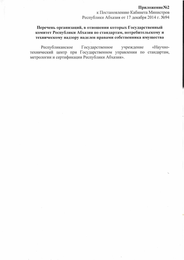 Постановление Кабинета Министров Республики Абхазия от 17.12.2014 № 94 "Об утверждении "Положения о Государственном комитете Республики Абхазия по стандартам, потребительскому и техническому надзору"