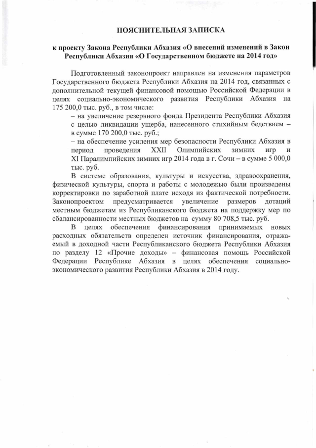 Постановление Кабинета Министров Республики Абхазия от 11.12.2014 № 93 "о проекте Закона Республики Абхазия "О внесении изменений в Закон Республики Абхазия "О Государственном бюджете Республики Абхазия на 2014 год"