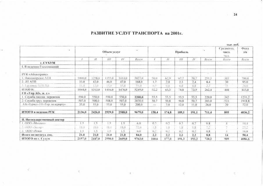 Постановление Кабинета Министров Республики Абхазия от 24.08.2000 № 296 "О прогнозе социально-экономического развития Республики Абхазия на 2001 г."
