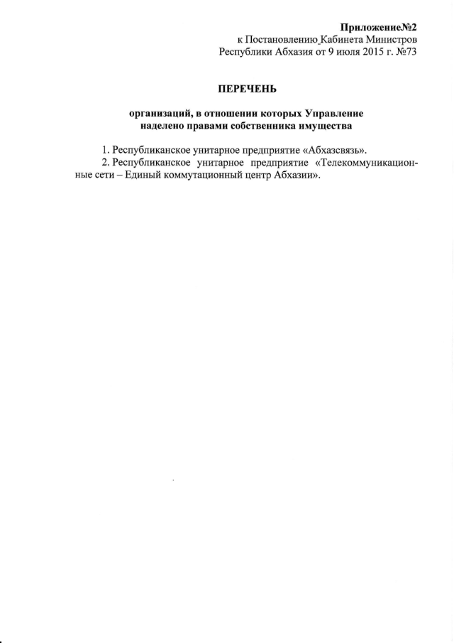 Постановление Кабинета Министров Республики Абхазия от 09.07.2015 № 73 "Об утверждении "Положения о Государственном управлении связи и массовых коммуникаций Республики Абхазия"