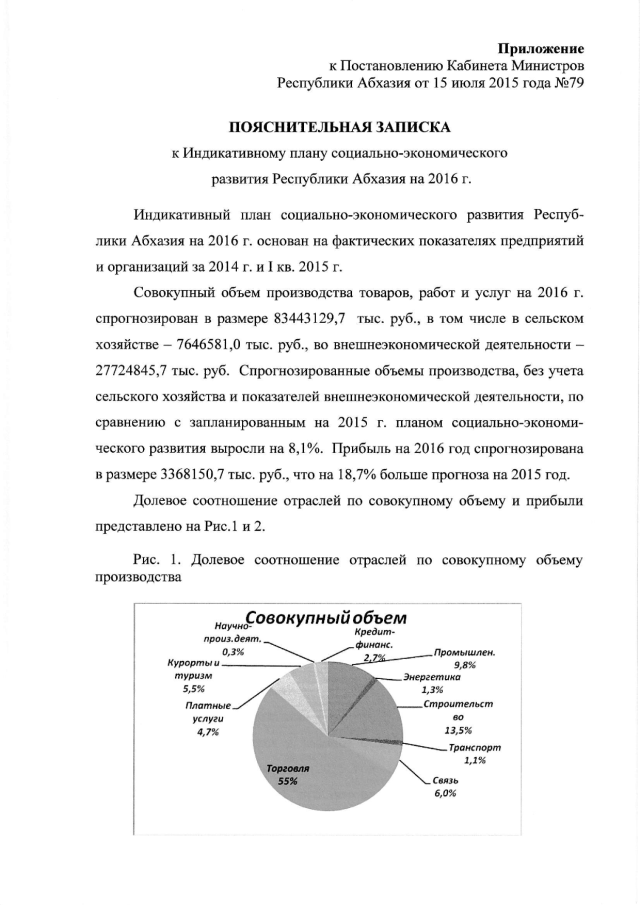 Постановление Кабинета Министров Республики Абхазия от 09.07.2015 № 79 "Об утверждении "Индикативного плана социально-экономического развития Республики Абхазия на 2016 год"