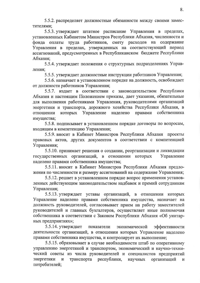 Постановление Кабинета Министров Республики Абхазия от 30.07.2015 № 81 "Об утверждении "Положения о Государственном управлении энергетики и транспорта Республики Абхазия"
