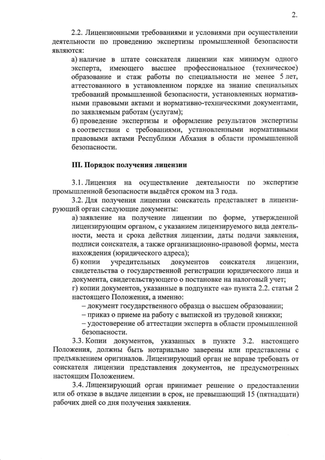 Постановление Кабинета Министров Республики Абхазия от 30.07.2015 № 82 "Об утверждении "Положения о лицензировании деятельности по проведению экспертизы промышленной безопасности"