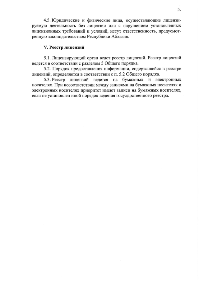 Постановление Кабинета Министров Республики Абхазия от 30.07.2015 № 84 "Об утверждении "Положения о лицензировании деятельности по проведению подводных работ"